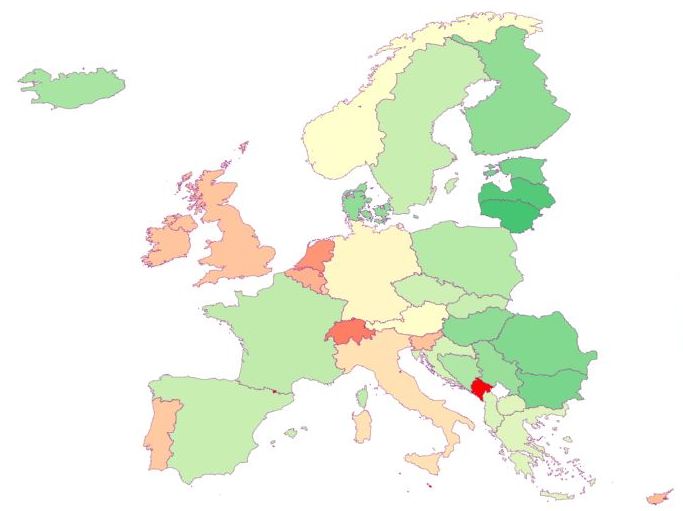 En gros, les pays en vert ou vert-jaune sont excédentaires, ceux de nuance rouge déficitaires.