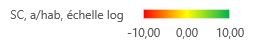 Il y a beaucoup plus de nuances vertes que de rouges, ce qui pourrait nous induire à l’optimisme. Et de fait, dans l’article (1), on avait noté que le SC moyen mondial est 0.18 ha/hab.